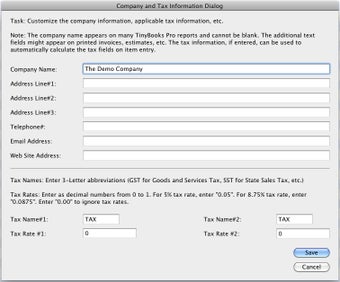 If you want to import data from an external application, TinyBooks Pro will allow you to although its not clear which applications it fully supports as regards this. Managing and tracking taxes is often a main concern of people using software such as TinyBooks Pro and it does handle Sales Tax, GST (Goods and Services Tax), VAT (Value Added Tax), PST (Provincial Sales Tax) and more.